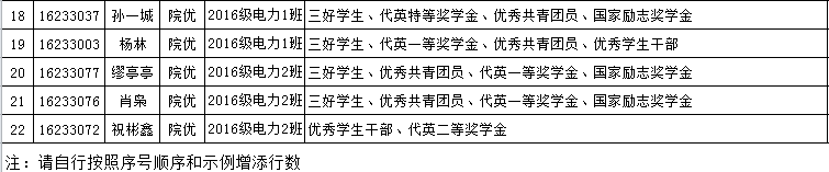 序号 班级 姓名 减免档次 甲等 乙等 丙等 1 2016电力1班 王少...