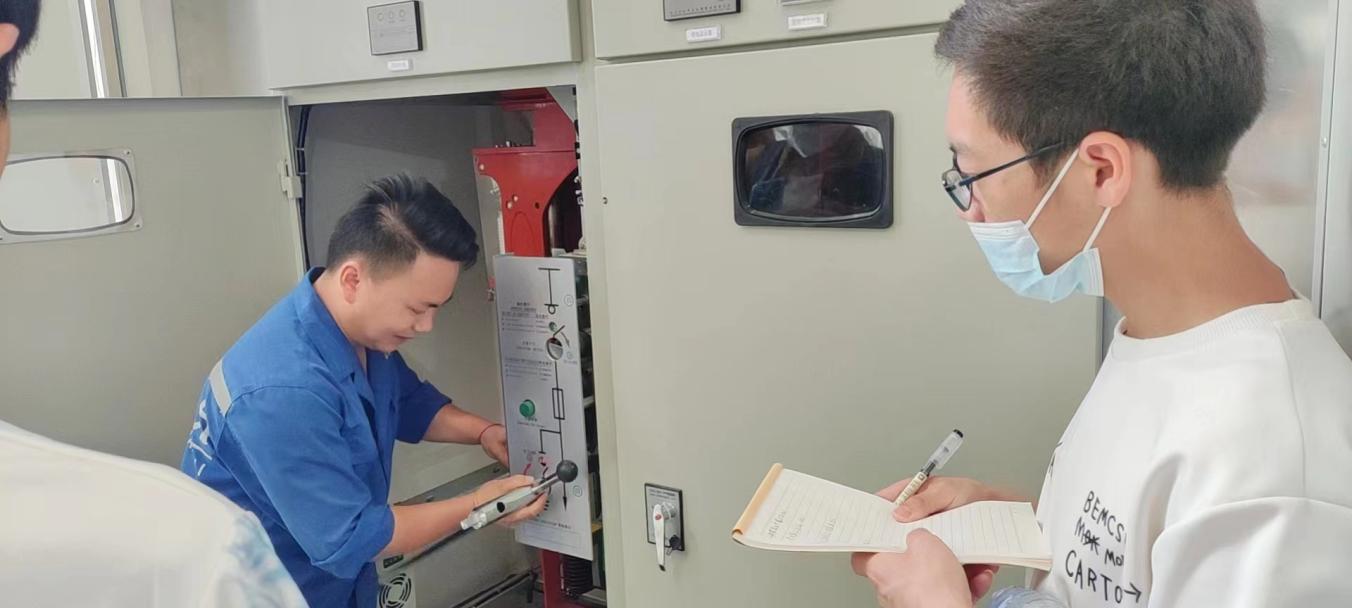 2022年6月21日,太阳成集团tyc151cc李静老师和雷冬梅老师带领电力系统自动化专业的员工前往泸州天灵开关有限公司进行参观学习。在参观期间,负责带领同学们的是电力系统自动化专业07级的学长王刚,并为同学们现场讲解智能柜的接线原理,倒闸操作的步骤。小组成员正在进行智能配电柜的分合闸操作多功能电能表的认识与接线方法,王刚学长耐心的向同学们解释了两种仪表接线方式的不同之处,讲解了微机保护的原理。同学们都表现出了...