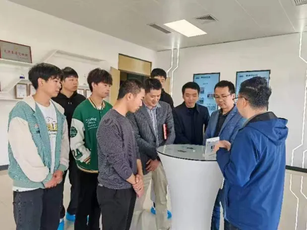 在“党建+科技创新与技术革新合作”方面,邱富军介绍了公司的科研方向和成果,希望结合企业在晶体谐振器产品工艺改良、效率提升、材料改良等方面的需求,利用公司印度籍博士后Kumar等材料领域博士团队的专业研究领域为企业提供晶体谐振器衬底材料、金属材料、封装材料以及智能化控制等方面的解决方案。同时希望联合公司市级重点实验室与企业市级工程中心共同申报省级工程技术项目。张圣亮部长详细介绍了企业在制造晶体谐振器方面材料的新需求,期待与高校科研团队合作解决企业技术难题。在“党建+生产实习与就业一体化合作”方面,雷亚军介绍了公司专业建设情况、毕业生规模、员工生产实习与就业一体化建设的思路及做法。文国金介绍了企业发展历程、业务范围、产品特色以及岗位需求与匹配等情况,并与毕业生代表作了深入交流,详细介绍了毕业生关心的具体工作岗位要求、发展前景、薪资待遇等方面的问题,为生产实习与就业一体化合作打下了坚实基础。本次联合党建活动是校企双方深化合作新的开端,是校企双方深度融合新的探索。双方一致表示,下一步要引入数智技术,丰富产教融合内容,发挥大数据优势实现对参与主体需求的动态分析,促进产教融合资源供给模式的优化与增效,提高服务企业转型升级的精准度和人才培养的匹配度,在人才培养、资源开发、课程建设、教师培训、科技创新等方面深化合作,打造发展命运共同体。