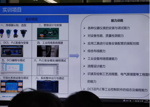 本次研修班采取“理论+研讨+实操”相结合的方式,开展仪器仪表相关课程教学与研究实践。在培训中,培训老师重点讲解了各种仪器仪表的安装与调试,对设备性能、质量检测;应用工具进行设备安装配管的装配技能综合布线;工业设备网络搭建能力流程设计;识读及绘制工艺流程图、电气原理图等工程图及DCS及PLC等工业控制软件的组态及编程等。
