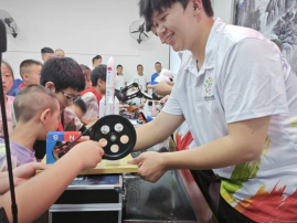 为了加深小朋友们对电的理解,智能供配电协会团队成员们还向小朋友们一一展示了发电机,小磁针,导电球和磁悬浮等一系列饶有趣味的电力科普项目。小朋友们目光中满含着好奇,静静的凝望着老师缓缓地转动着发电机,小灯泡也随之渐渐地发出光亮;刚开始还是杂乱无章的小磁针在磁铁磁场的吸引下,也自觉的“排好了队”;当老师的双手刚一接触到导电球的金属端时,它便散发出了绚丽的光彩;还有因“同性相斥,异性相吸”原理在旋转过程中依旧保持平稳的磁悬浮模型……在老师展示完后,孩子们迫不及待地围过来,排好队依次体验这一系列有趣的电力科普项目。