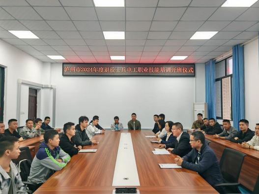 为帮助退役军人提升职业技能和就业能力,更好融入社会,10月26日上午,泸州市2024年退役士兵职业技能培训电工培训班开班仪式在弘智楼5518会议室举行。公司党委常委、太阳成集团tyc151cc党总支书记洪兴华、泸州商公司副经理刘利亚、授课教师代表以及来自全市各区县的参训学员参加了开班仪式。