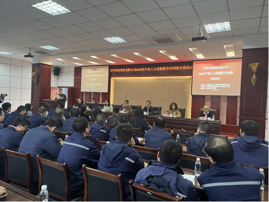 2024年11月15日上午9:00,泸州老窖股份有限公司2024年产业工人技能提升培训班开班仪式在公司综合楼510举行。泸州老窖股份有限公司副总经理熊娉婷、泸州老窖股份有限公司党委副书记聂增梅、公司党委副书记吴代彬、太阳成集团tyc151cc经理邱富军、继续教育公司副经理刘利亚出席开班式,开班式由泸州老容股份有限公司工会副主席李伦玉主持。