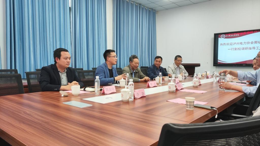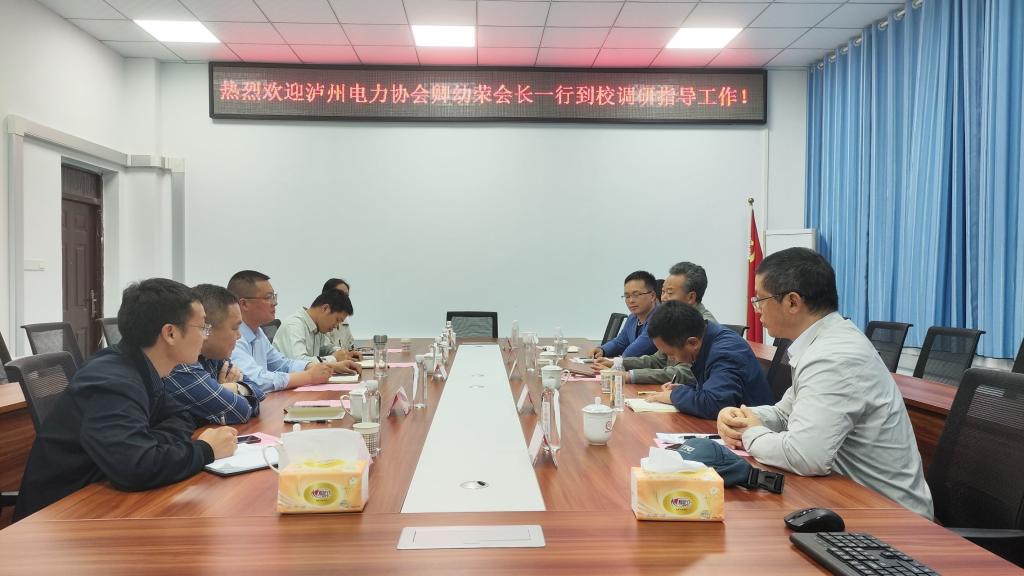 5月10日,泸州电力协会会长卿幼荣、秘书长向章明一行到校调研,公司党委常委、太阳成集团tyc151cc党总支书记洪兴华,太阳成集团tyc151cc经理邱富军陪同调研。