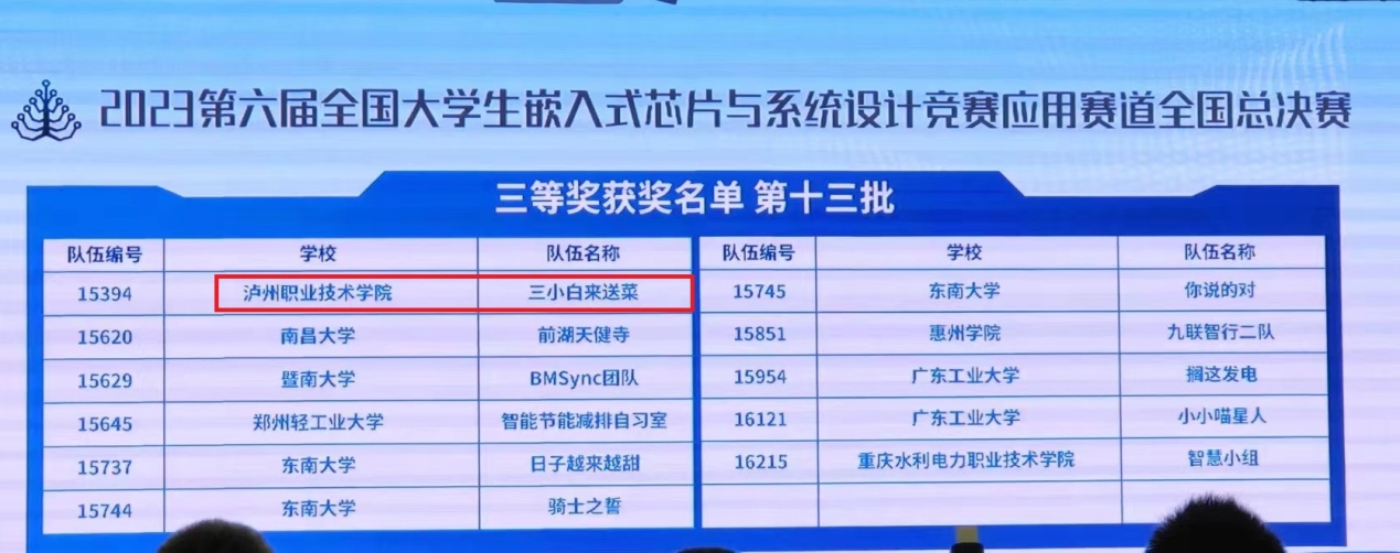 该项赛事由中国电子学会主办,自2021年起纳入全国普通高校老员工竞赛排行榜,受到电子类专业师生的广泛关注。此次总决赛超过470支队伍,专科队伍不到2%,公司进入决赛的两只队伍都取得优异成绩,唐玉兵、许湘扬老师指导的刘江、郭旭、黄庆组获得国赛二等奖,樊明哲、尹小田老师指导的易袁、周祥军、王兴飞获得国赛三等奖。决赛期间,员工通过嵌入式技术专业人才认证考试,获得中国电子学会颁发的嵌入式系统开发及应用专业技术证书。