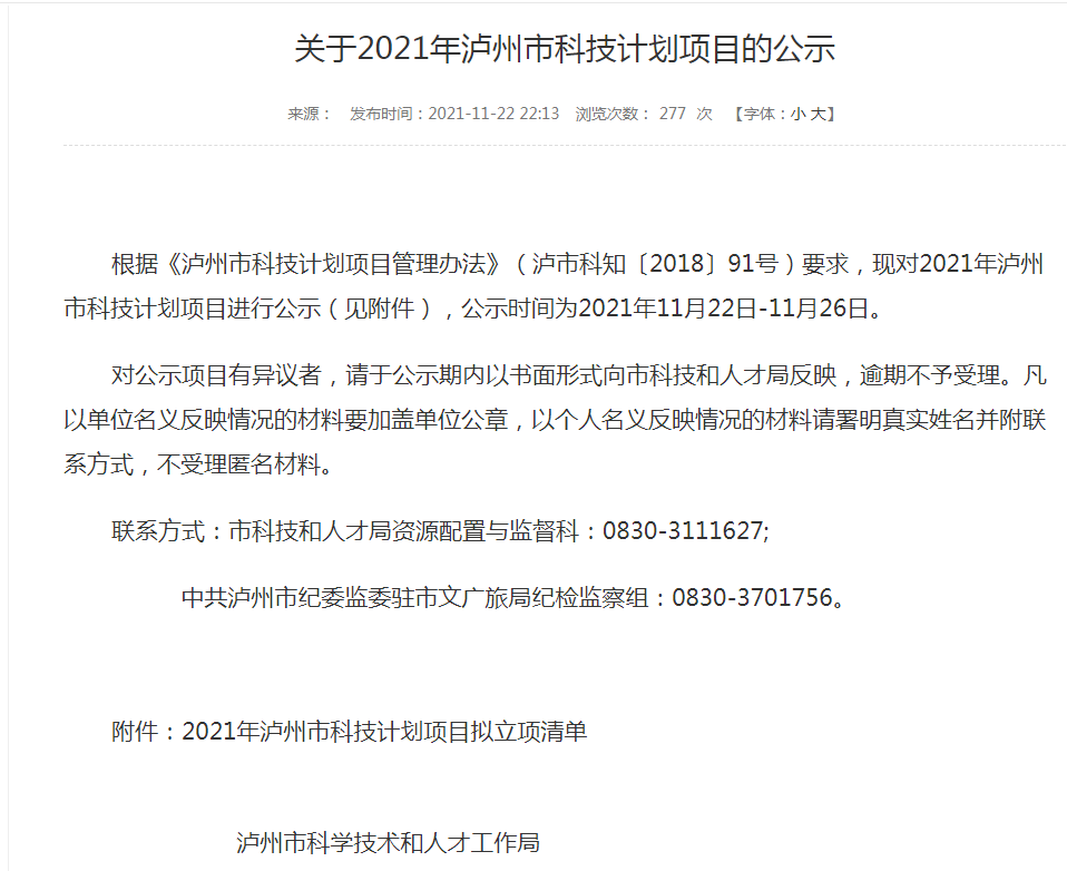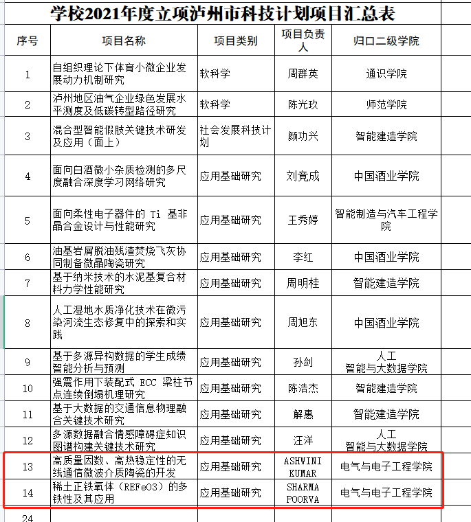 2021年11月21日, 泸州市科学技术和人才工作局官方网站对2021年科技计划项目立项情况进行了公示,公司高层次人才Sharma 和Kumar博士后及其科研团队分别牵头申报的《稀土正铁氧体(REFeO3)的多铁性及其应用》和《高质量因素、高热稳定性的无线通信微波介质陶瓷的开发》应用基础研究项目成功获批为泸州市2021年科技计划项目。