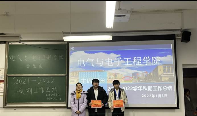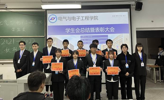 员工会主席陈思量等对本学期工作中表现优秀的部长进行表彰并颁发证书。