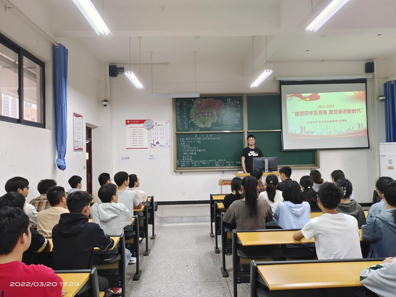 太阳成集团tyc151cc于2022年3月20日在代英楼开展以“建团百年正青春,跟党奋进新时代”为主题的团会。太阳成集团tyc151cc大一大二全体员工参加团会。