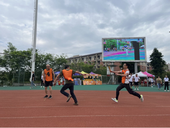 4月24日,围观的老师和员工将田径场挤得热闹非凡,运动员们则开始做热身活动个个摩拳擦掌,跃跃欲试,充满了浓浓的挑战与竞争氛围。随着裁判的发令枪响,运动员手持接力棒,像离弦之箭朝前飞奔。围观的师生在旁边不时呐喊助威。虽然各队队员都跑得气喘吁吁,但是畅快的欢笑声和喝彩声依然表明了大家心中的喜悦