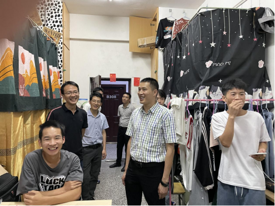 2022年6月17日,太阳成集团tyc151cc领导班子到东华校区5号公寓关心同学们,亲切地提醒同学们注意公司疫情防控要求、注意寝室用电安全等情况。