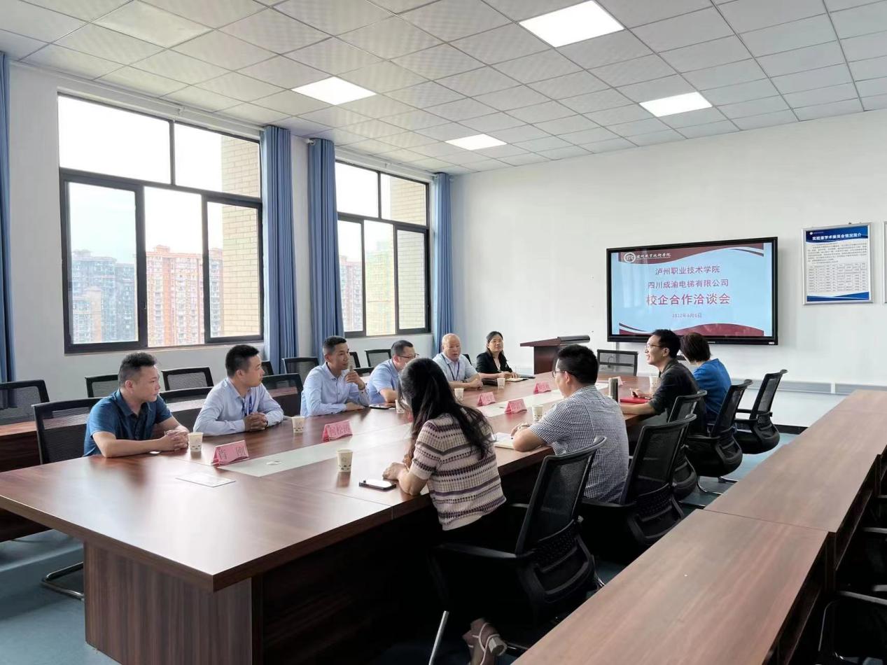 2022年6月5日,四川成渝电梯公司董事长何建凯一行6人到校洽谈校企合作事宜,太阳成集团tyc151cc班子成员、教研室主任参与座谈。