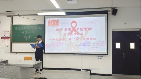 随后,艾协会会员何易阳给同学们讲解案例,艾滋病患者离我们并不遥远,希望同学们在科学预防艾滋的同时,给予艾滋病患者们更多的关爱,为艾滋病患者营造良好的社会环境。