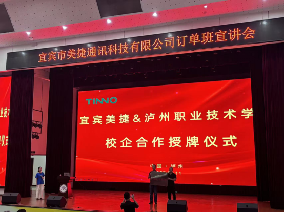 2025年9月11日下午,宜宾市美捷通讯科技有限公司订单班组班宣讲会在公司玉阶素质教育中心举行。校企双方代表、相关专业教师和2023级全体员工参加了本次宣讲会。