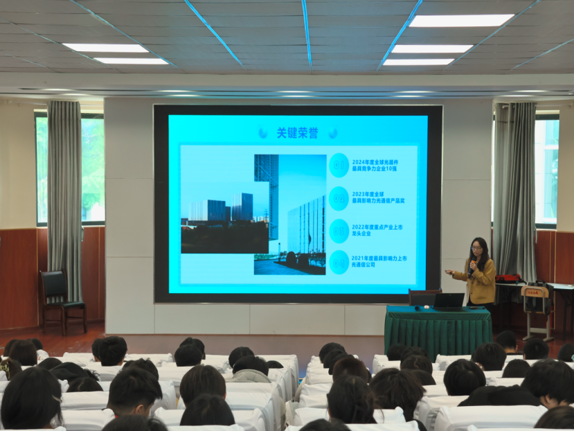 宣讲环节,八家企业依次就企业发展、岗位需求、薪资待遇及福利体系进行了详细介绍。各企业准备充分、内容详实,从不同角度展示了企业优势与岗位需求,使同学们对行业前景和职业发展有了更清晰的认识,现场互动热烈。