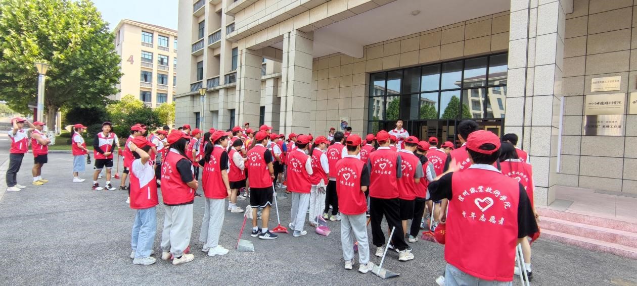 活动开始前,员工志愿者们在弘智楼门外集合完毕,员工会青年站为志愿者们分发好志愿者服和打扫工具,告知活动中的注意事项。