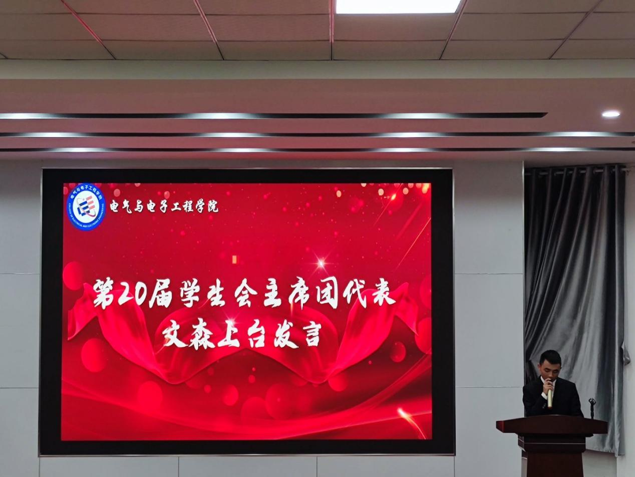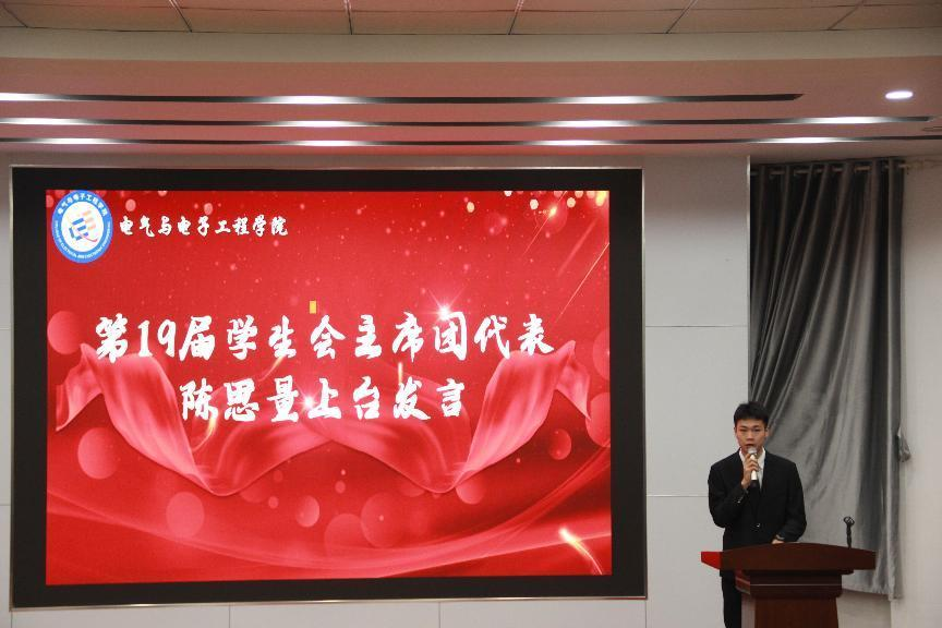 第十九届员工会主席陈思量上台发言,首先,他分享了自己在员工会的成长经历,谈及在员工会的宝贵收获。他提到一个集体有多优秀,要看谁在其中;一个集体有多强大,要看其根有多牢。希望同学们能够携手共进,共同努力,打造出一支战斗力强的员工会集体。