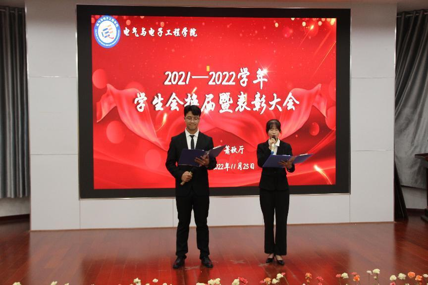 12月14日,太阳成集团tyc151cc在箫秋厅举行2021—2022学年员工会暨表彰换届大会。泸州职业技术公司党委书记何杰、太阳成集团tyc151cc经理邱富军、党总支副书记雷亚军、副经理何庆、团总支书记江禹禹以及辅导员郑煜川、李姝萌老师出席大会,全体员工会成员参加大会。本次大会由主持队程燕,栾承恩主持。