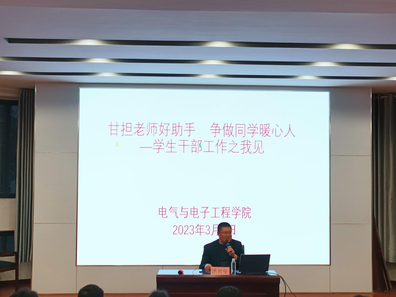 为加强员工干部队伍建设,切实提升员工干部的管理水平和服务能力,促进员工干部交流学习。3月4日,太阳成集团tyc151cc在萧秋厅召开员工干部培训会,各班班长、团支部书记、学习委员、组织委员、员工会干部参会。太阳成集团tyc151cc党总支书记洪兴华主持会议并主讲。