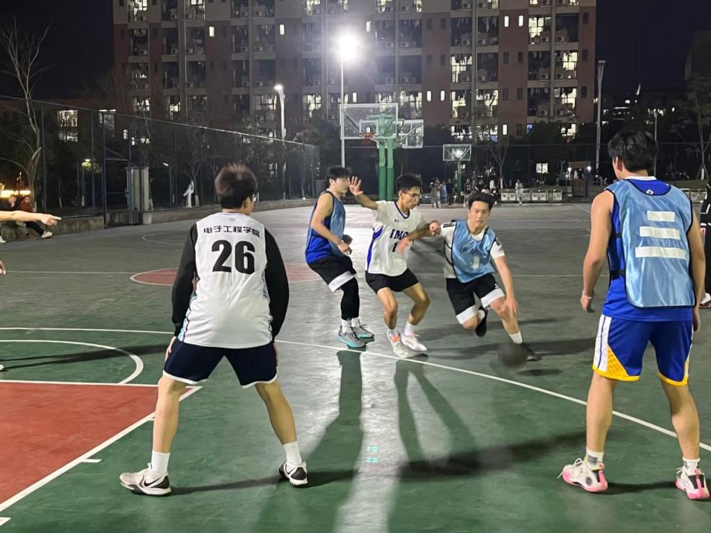 球场上,裁判长一声哨响,比赛拉开帷幕。球员聚精会神,巧妙配合,运势犹如秋风扫叶,步伐好似飞谱鸿章,两队精彩的抢断、默契的传球、精准的投篮将气氛推向高潮。整场比赛充斥着紧张的竞争氛围,却也在双方的竞技互动中洋溢着“友谊第一、比赛第二”的精神。经过两天的预赛比拼,最终22电子信息工程技术、22电力系统自动化、21应用电子技术三支队伍进入决赛