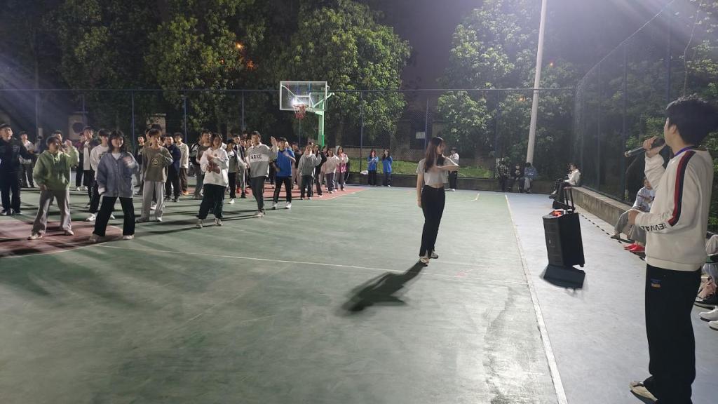 同学们以饱满的热情在风中翩翩起舞,跟随音乐的旋律整齐挥舞。整个表演方队队形千变万化、姿态万千,大家激情饱满地练习着各种舞蹈的姿势,为即将到来的“玉章”体育节做了充分准备。