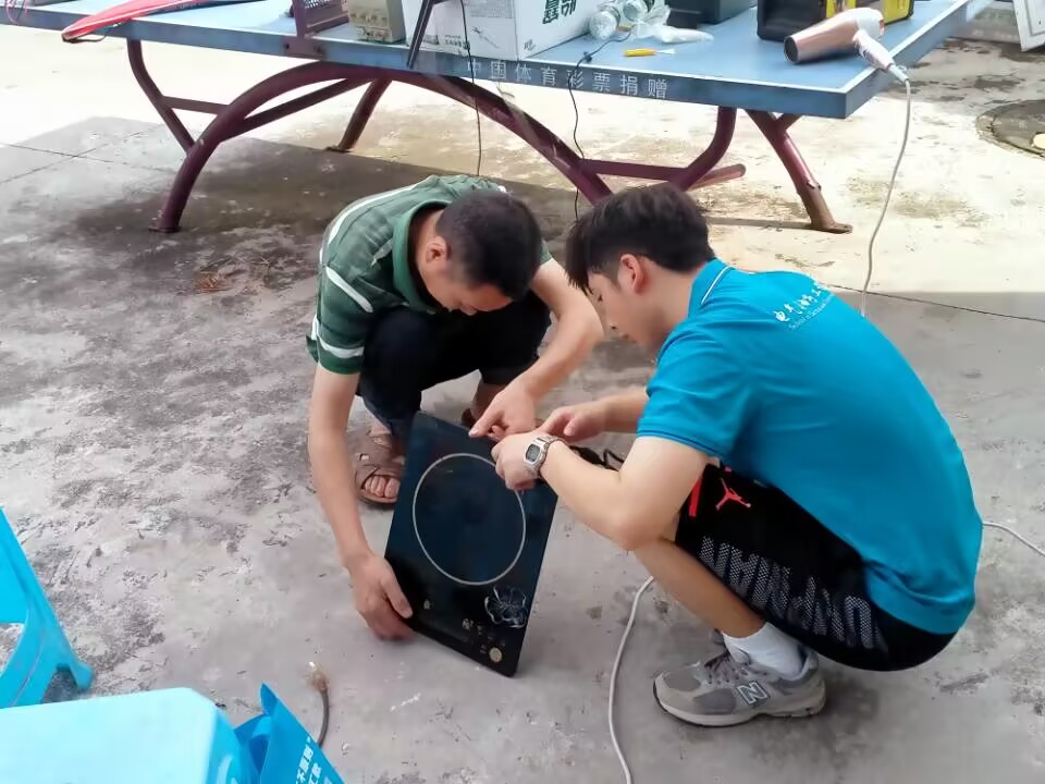 活动前一日,队员通过线上线下积极宣传本次活动,早上8:00活动准时开始,村民陆陆续续带来需要维修的小家电,如:电钻机、加热器、电磁炉、电吹风等,解决其维修不方便的困扰。维修组队员以高效、热情态度积极开展维修,维修结束后贴心将物品送回村民家中,村民们对此深表感激。太阳成集团tyc151cc充分结合专业特色送科下乡,花样焊接电路板,对儿童科普电路板小常识,驻村开展义务维修活动。此外,为保障居民生命安全,“三下乡”实践队其余队员下乡入户用心宣传了安全用电知识以及普通家电保养常识,为农村居民日常生活中使用电气设备提供了一定安全保障。
