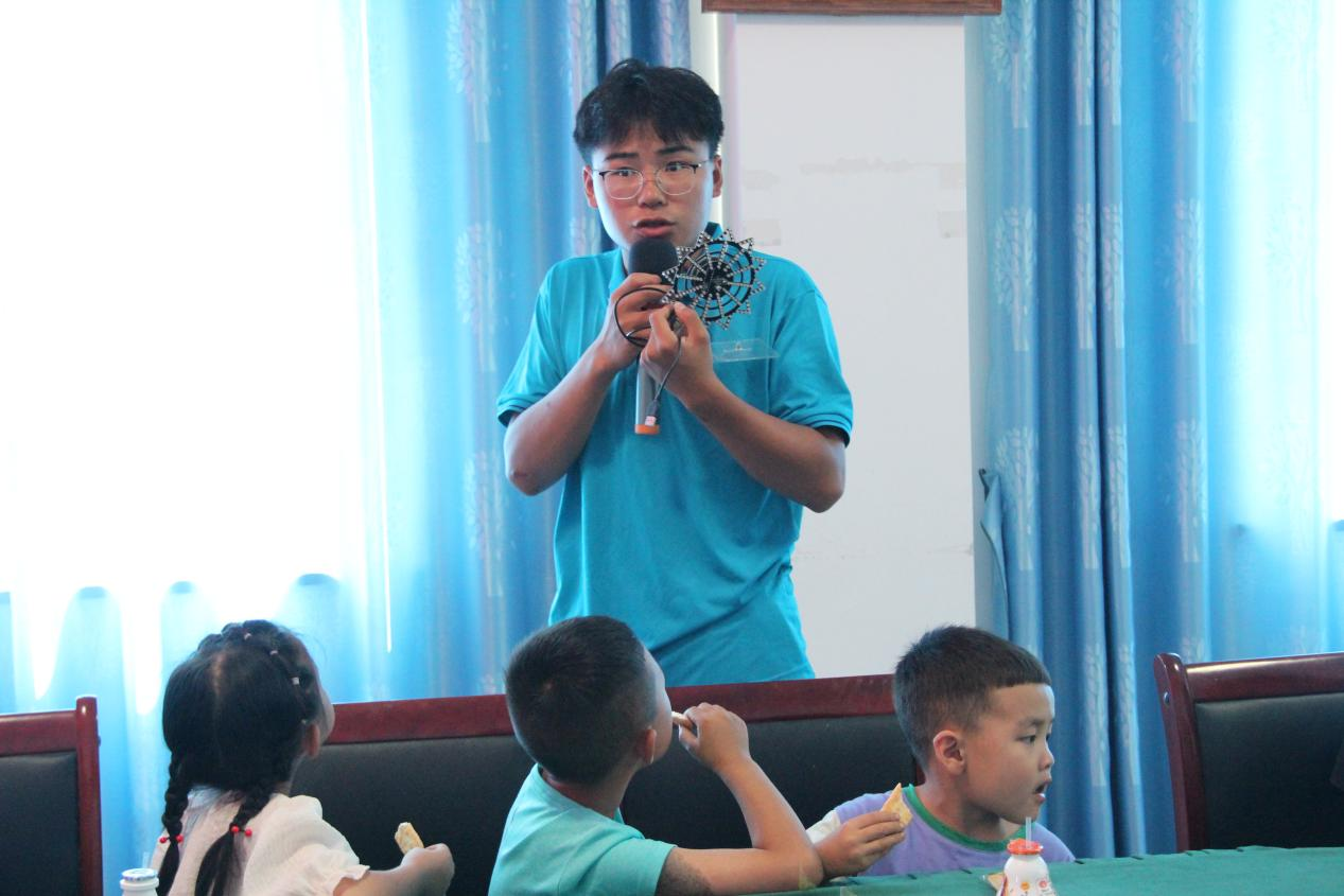 在社会实践队队员的充分准备下,队员岳贤荣为小朋友讲解了防电防溺水暑期安全知识,开展了电路板科普教育活动。在宣传科普趣味电子产品时,儿童表现出电子知识浓厚兴趣,整体效果较好。