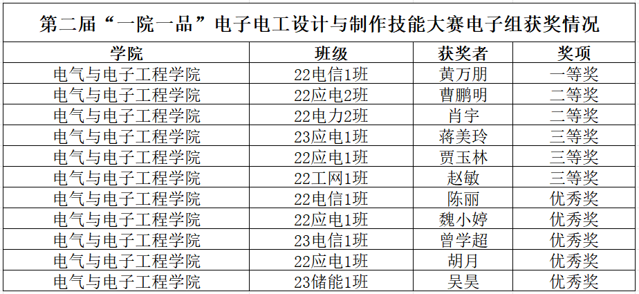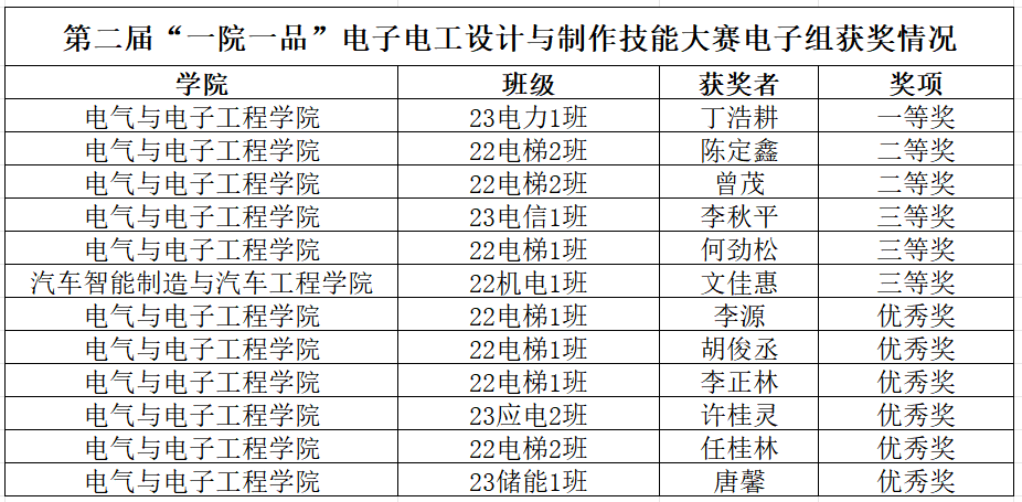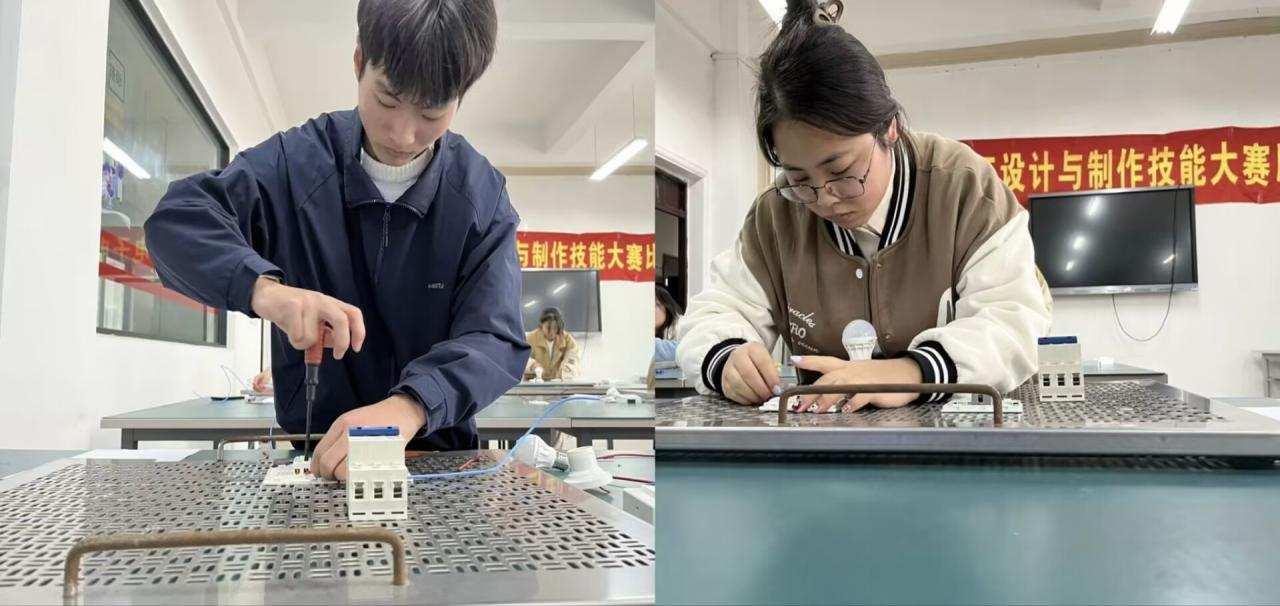 本次竞赛分为电工组与电子组,现场氛围炽热,参赛者情绪激昂。竞赛历程包括初赛、复赛以及决赛三个阶段。在比赛过程中,同学们聚精会神于指定图纸,深入思考,充分运用日常所学技能,熟练地构建出规定模型。赛后,经过评委老师的严格评审,黄万朋与丁浩耕荣获一等奖,陈定鑫等4人获得二等奖,蒋美玲等6人获得三等奖,陈丽等13人荣获优秀奖。