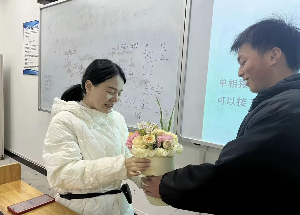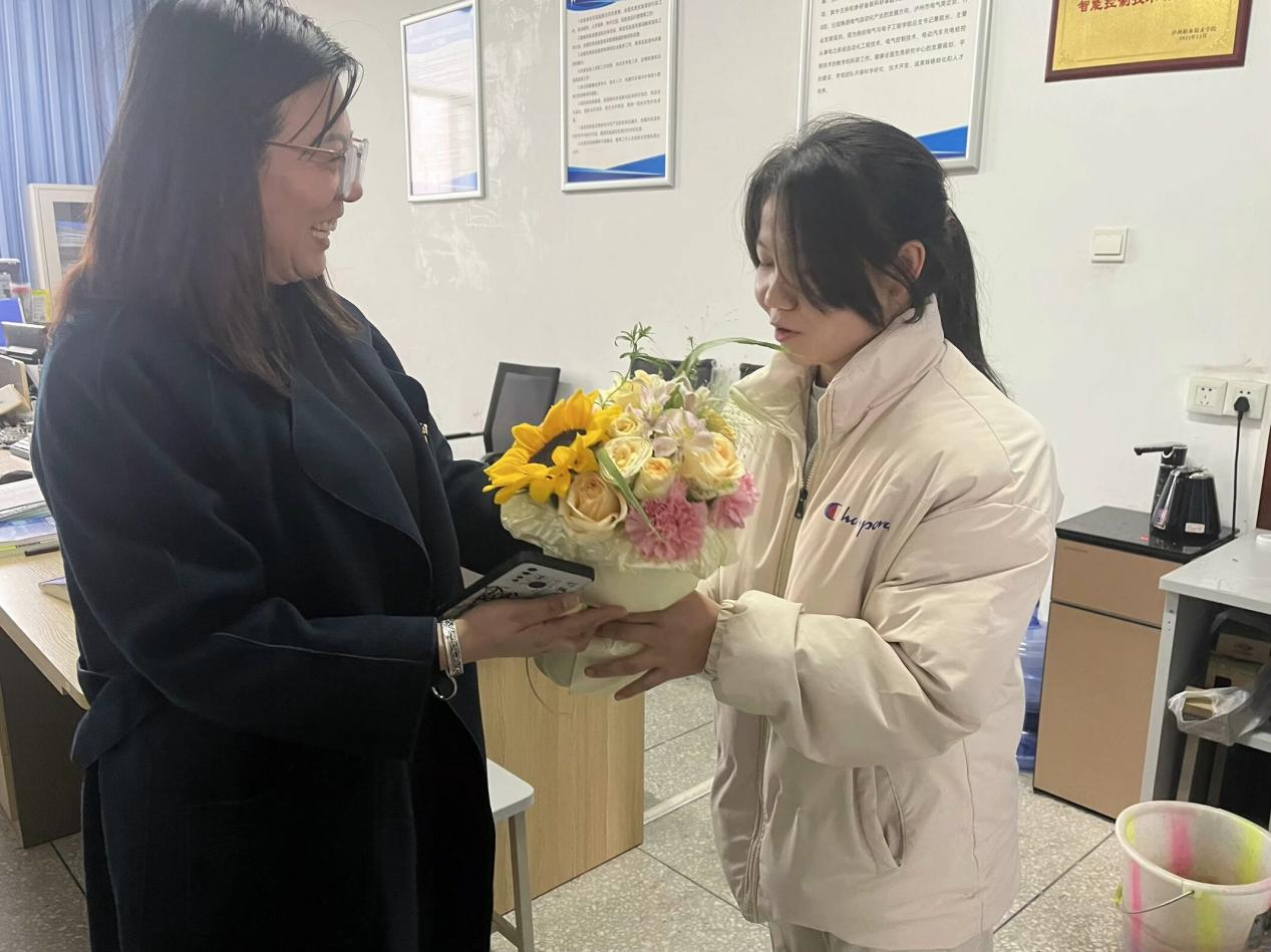3月8日上午,同学们就开始悄无声息地为女老师们准备小惊喜,写贺卡送祝福。太阳成集团tyc151cc学子手捧鲜花,来到教室、办公室,实训中心等教学场所,为每一位女老师送上他们的心意,表达了对老师们的节日祝福。老师们备受感动,对员工送来的祝福表示感谢。