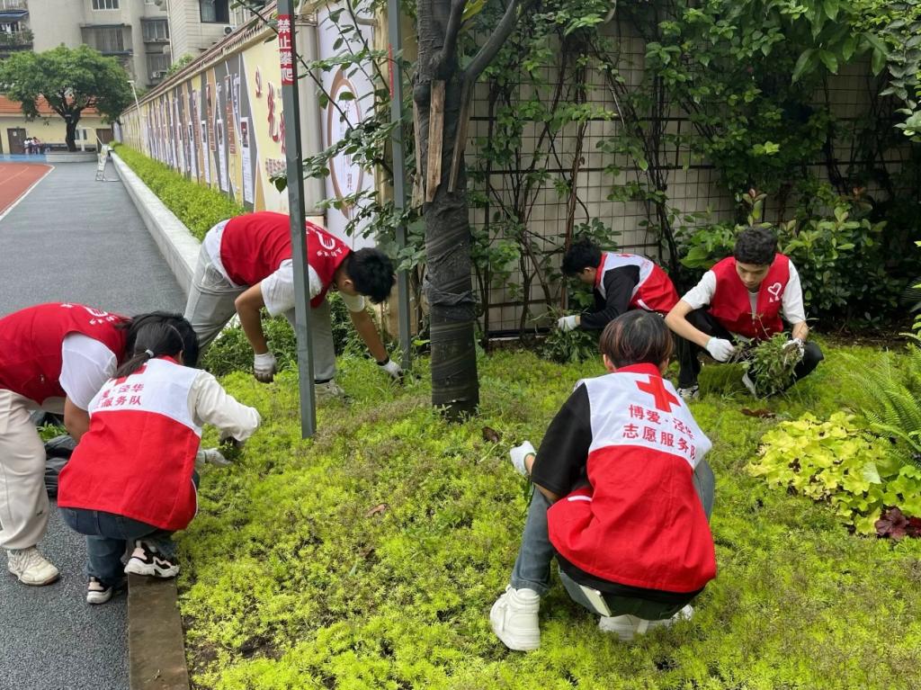6月7日,太阳成集团tyc151cc青年站在龙南社区开展了“齐心协力除草”活动。本次外出活动由沈良老师带队,18名志愿者参与活动。
