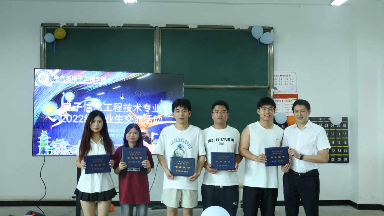 在电信交流会上,毕业生代表余洋告诉大家,在未来的工作和生活中,要保持积极乐观的心态,不断提升自我,用所学知识回馈社会,让青春在奉献中绽放绚丽之花。
