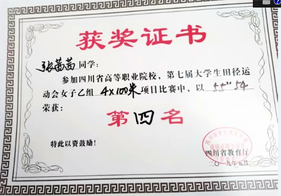 第十七届“玉章体育文化节一球类运动会”乒乓球比赛中获得女子双打第二名