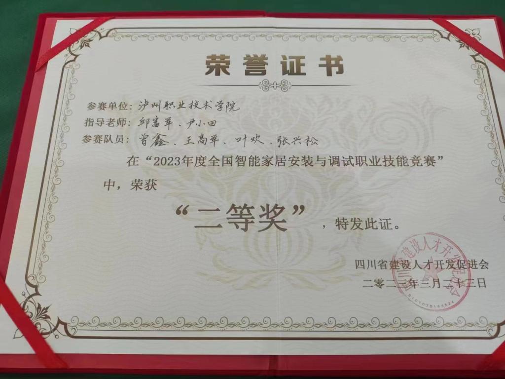 2023年度全国智能家居安装与调试职业技能竞赛二等奖