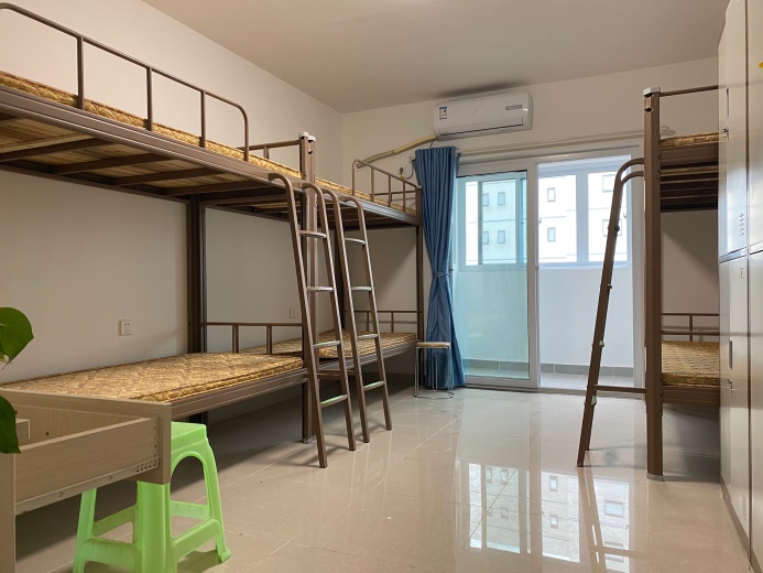 3、 住宿:公司宿舍6人间(如下图),管理费30元/月,独立卫浴、热水、空调、阳台、wifi。宿舍园区内提供免费员工活动中心(室内外篮球场、羽毛球场、乒乓球室、台球室等)