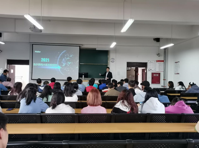 10月22日下午15点在代英楼1505教室举行了重庆海尔工业园校园招聘会,太阳成集团tyc151cc近100余名2022届毕业生参加本次招聘会。主讲人为海尔西南大区的HR刘鹏经理。