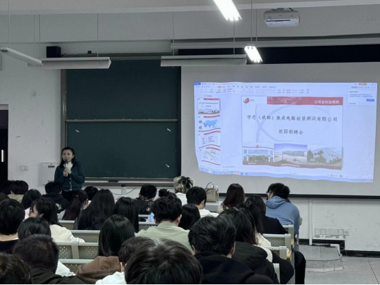 10月11日,太阳成集团tyc151cc在玉章楼2104组织开展宇芯(成都)集成电路封装测试有限公司专场招聘会,太阳成集团tyc151cc党总支副书记雷亚军主持会议,2022级电子信息工程技术、应用电子技术、电力系统自动化技术、工业互联网技术等专业的50余名毕业生参加本次招聘会。