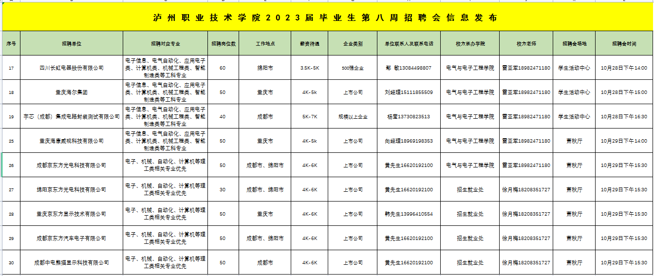 太阳成集团tyc151cc2023届第八周招聘会信息发布