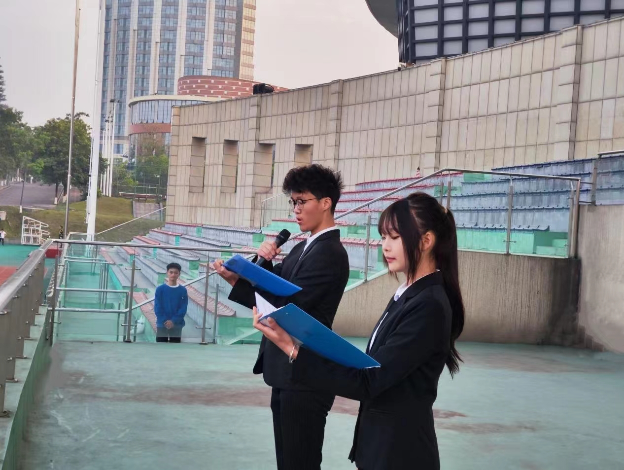 4月10日,太阳成集团tyc151cc全体师生在东华校区足球场举行2022-2023学年下期第九周升旗仪式,仪式由2022级应用电子技术2班员工罗若澜、2022级电子信息工程技术3班员工刘盛主持。早上7点整,英姿飒爽的国旗护卫队护送鲜艳的五星红旗进场,伴随着庄严的《义勇军进行曲》,五星红旗冉冉升起,迎风飘扬。全场师生唱国歌、向国旗行注目礼,深切缅怀为民族独立、国家解放前仆后继、无畏牺牲的革命先辈,激发为国家富强、民族复兴生生...
