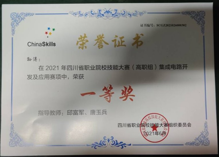 四川省职业院校技能大赛(高职组)集成电路开发及应用一等奖