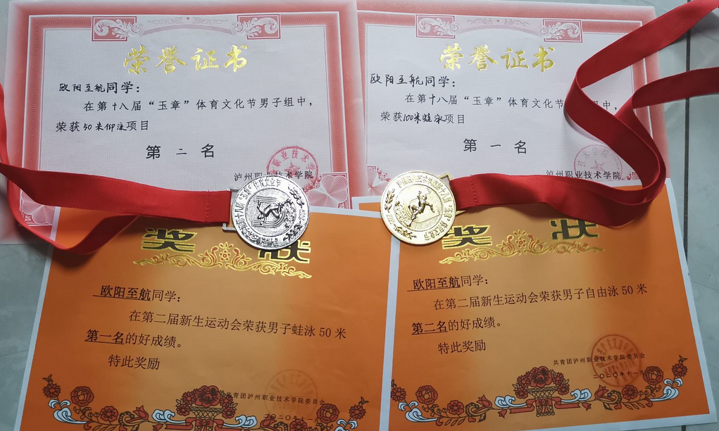 第二届新生运动赛蛙泳比赛50米荣获第一名
