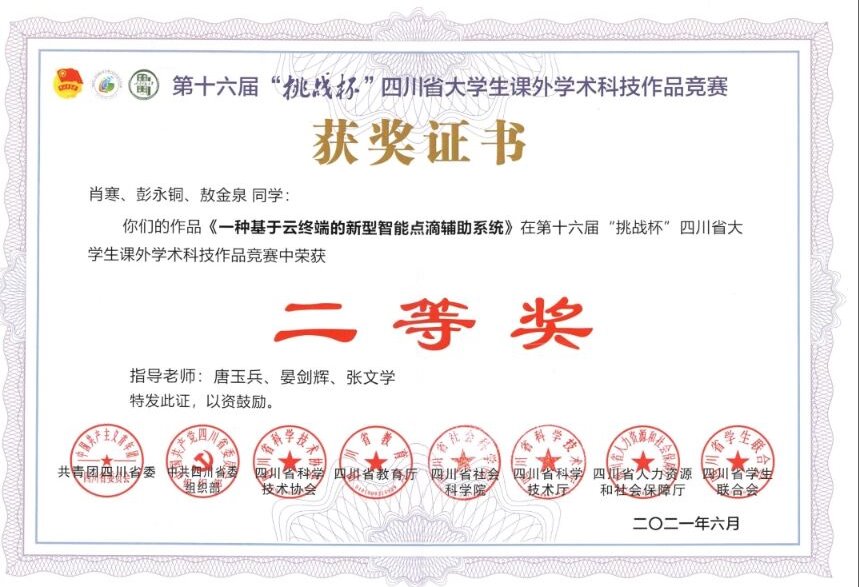 第十六届“挑战杯”四川省老员工课外学术科技作品竞赛二等奖