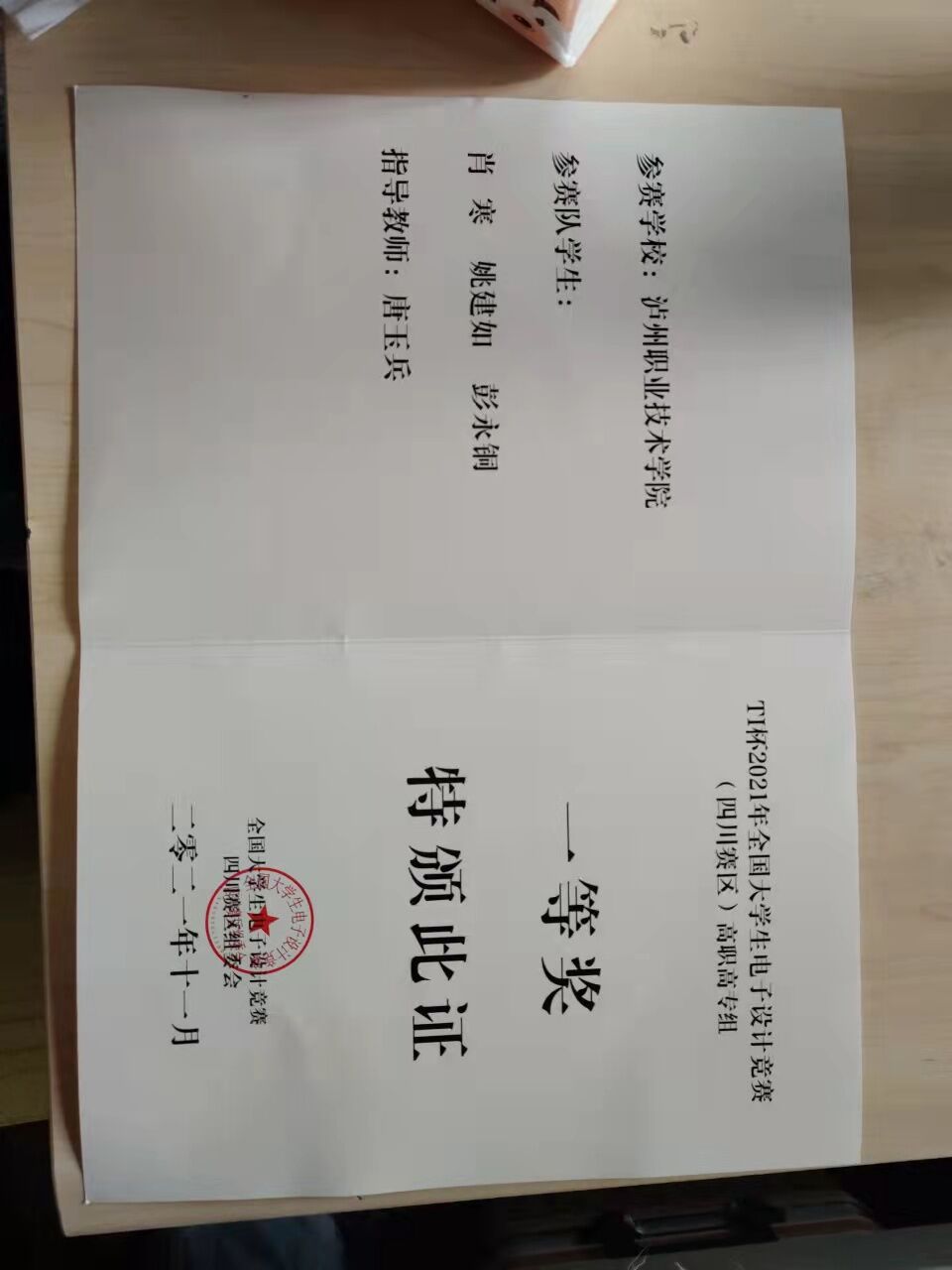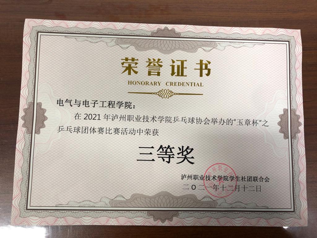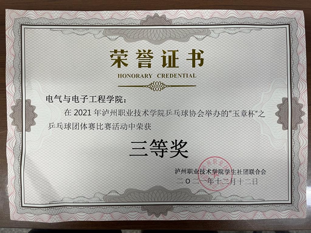 2021年太阳成集团tyc151cc“玉章杯”之乒乓球团体比赛活动中荣获三等奖