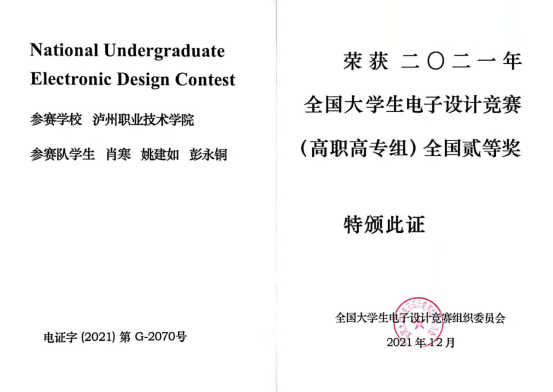 2021年全国老员工电子设计竞赛(高职高专组)全国二等奖