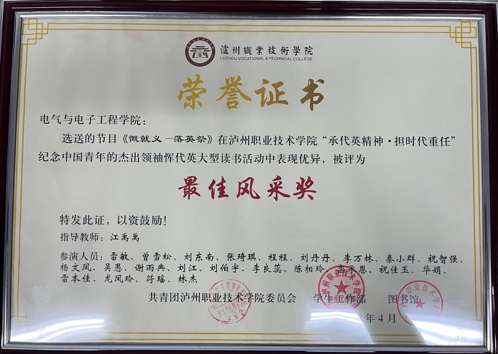 承代英精神·担时代重任”纪念中国青年的杰出领袖恽代英大型读书活动最佳风采奖