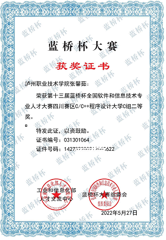 第十三届蓝桥杯全国软件和信息技术专业人才大赛四川赛区C/C++程序设计大学C组二等奖
