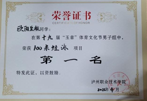 第十九届“玉章”体育文化节男子组100米蛙泳