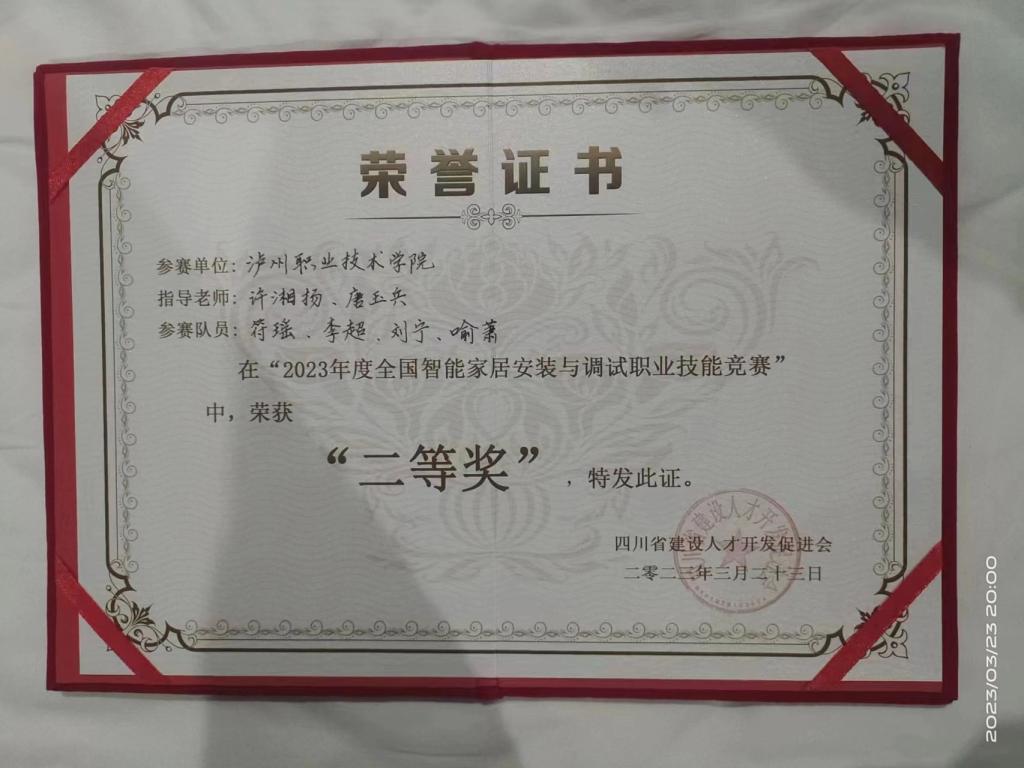 2023年度全国智能家居安装与调试职业技能竞赛二等奖