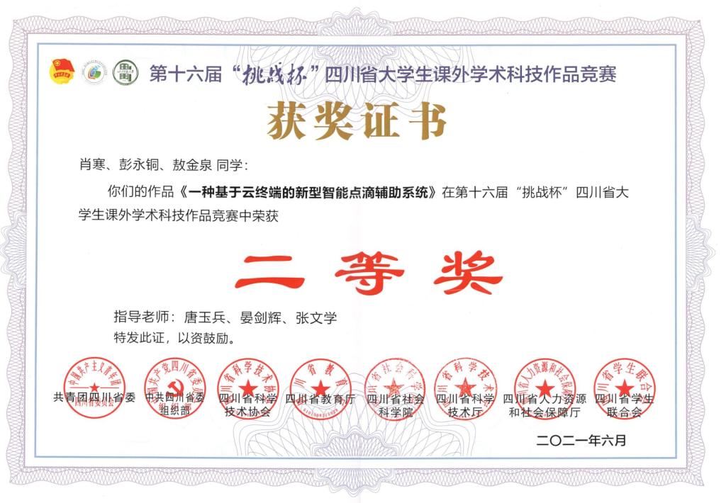 第十六届“挑战杯”四川省老员工课外学术科技作品竞赛中荣获二等奖